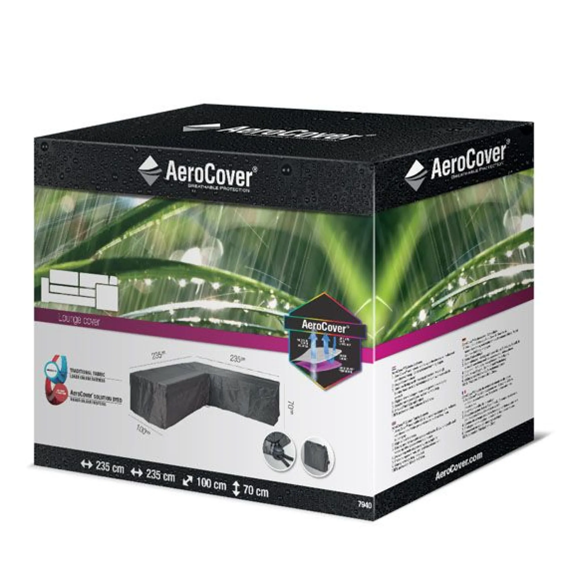 Loungesethoes voor hoeksets van AeroCover. Ademende loungesethoes voor loungeset in L-vorm 235x235x100xh70cm.