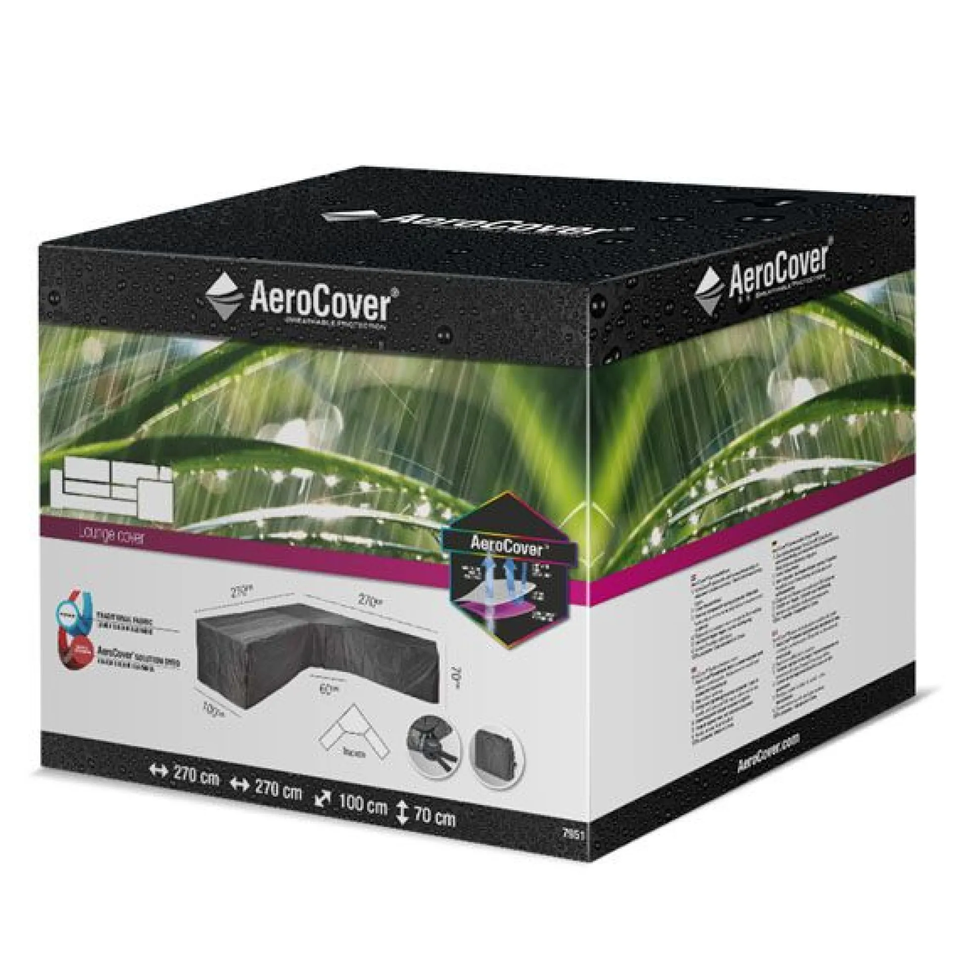 Loungesethoes voor hoeksets van AeroCover. Ademende loungesethoes voor loungeset met grote hoek of trapeze hoek 270x270x100xh70cm.