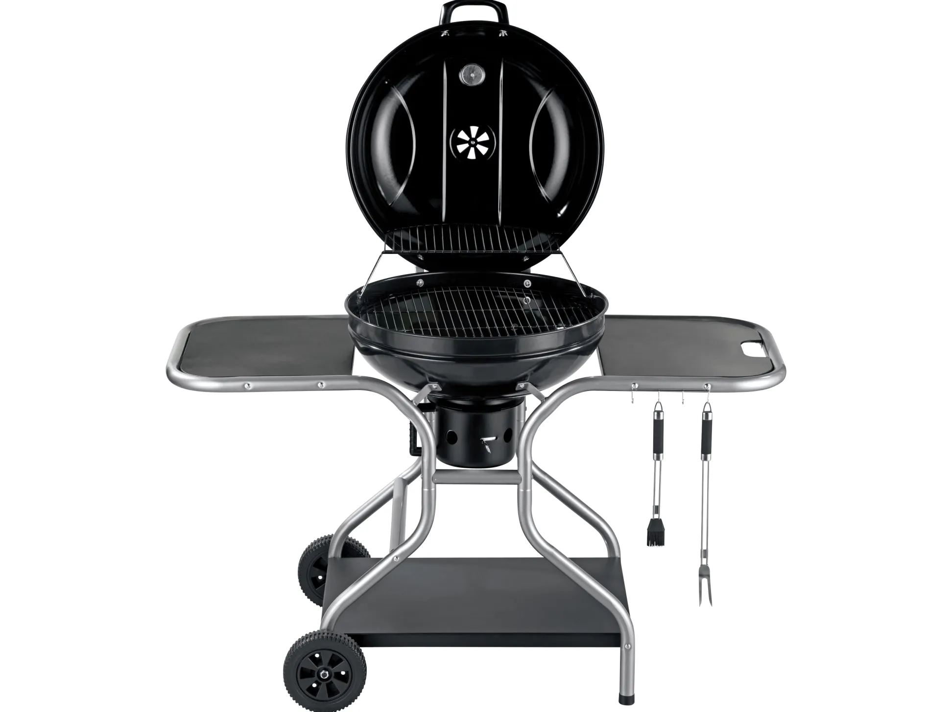 Zijtabletten en haakjes voor accessoires.
