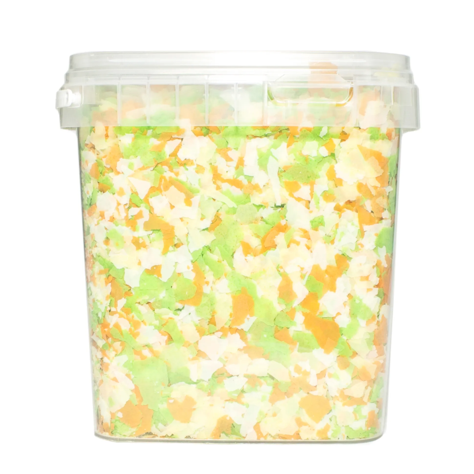 tarwevoerbloem, sojaschroot, tarwe, visolie. Toevoegingsmiddelen (Per KG): vitaminen: vit. A(3a672a): 12.500 IU, vit. D3(3a671): 500 IU, Vit. C: 200 mg, Vit. E: 80 mg, Sporenelementen: IJzer(3b107): 80 mg, jodium(3b202): 5 mg, koper(3b407): 5 mg, Mangaan(3b505): 20 mg, zink(3b612): 80 mg, Selenium (3b8.10): 0,3 mg. Conserveermiddelen, antioxidanten en kleurstoffen.