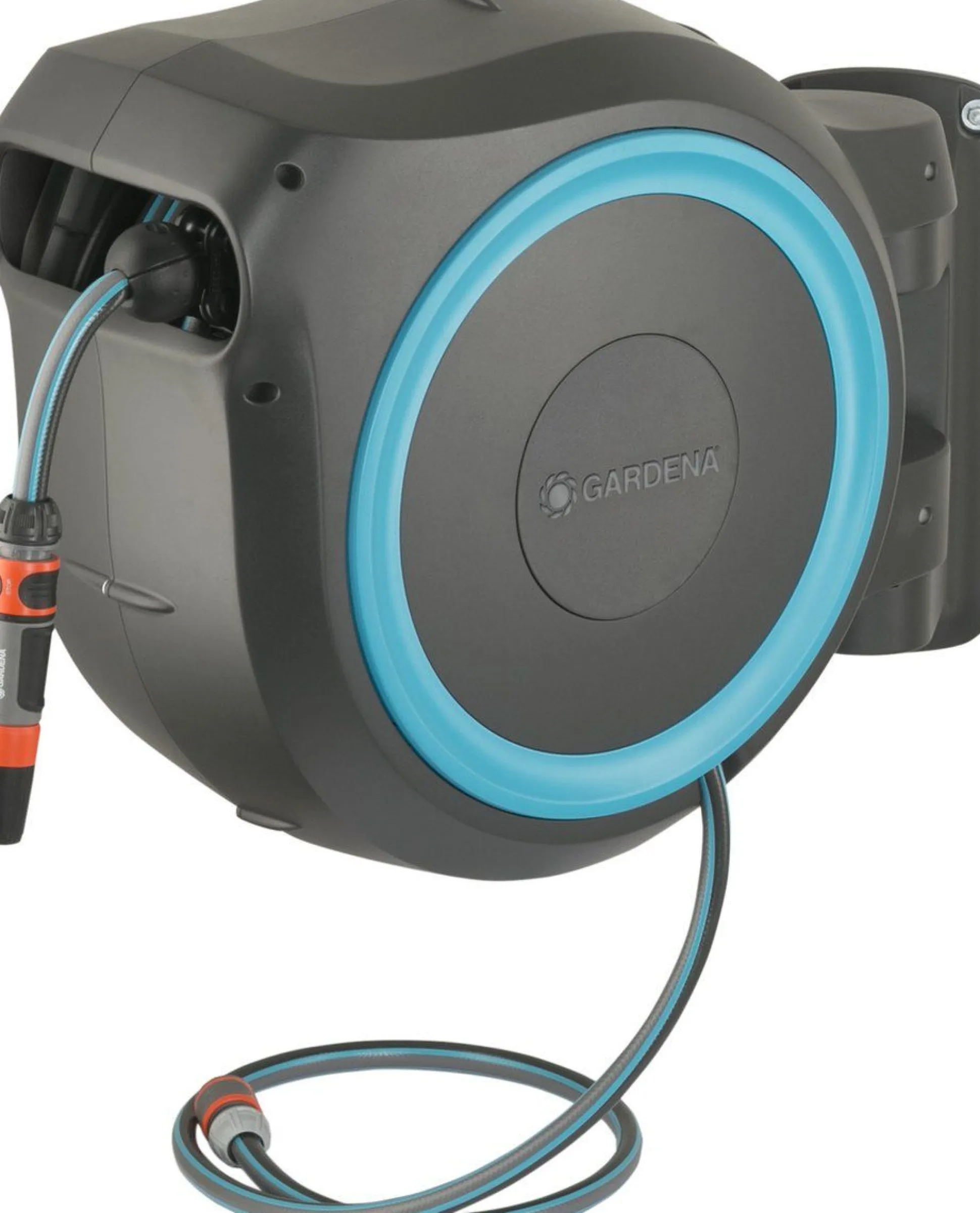 Met de wandslangenbox RollUp XL is het bewateren van een grote tuin aangenaam en eenvoudig. U bevestigt de compacte slangopslag permanent op de muur van uw huis en sluit deze met een aansluitslang aan op de kraan. Dankzij de 35 meter lange slang en de 180 graden draaibare slangenbox is het heerlijk om uw planten te bewateren en is dit geen corvee meer. De slangenhouder volgt uw bewegingsrichting en voorkomt dat de slang gaat knikken of in de war raakt.
