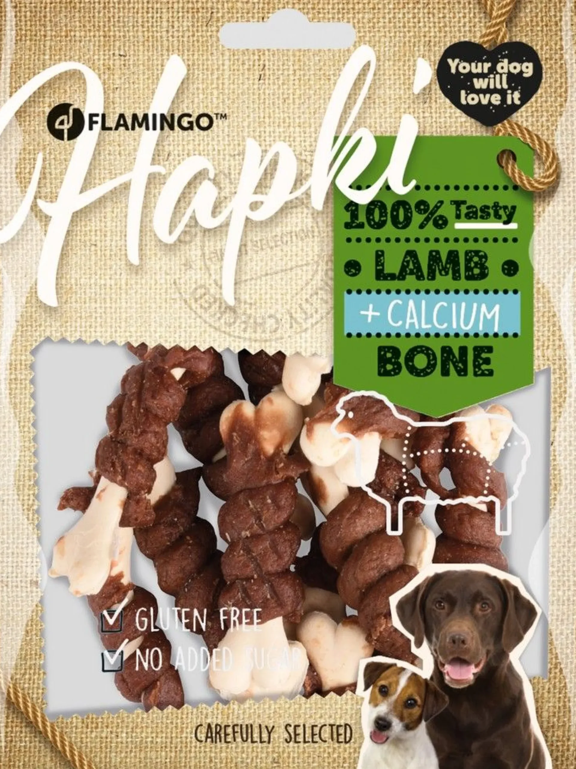 lam 47,8%, wit calcium bot 35%, glycerine 5%, zetmeel 5%, plantaardig eiwit 4%, sorbitol 3%, zout 0,2%