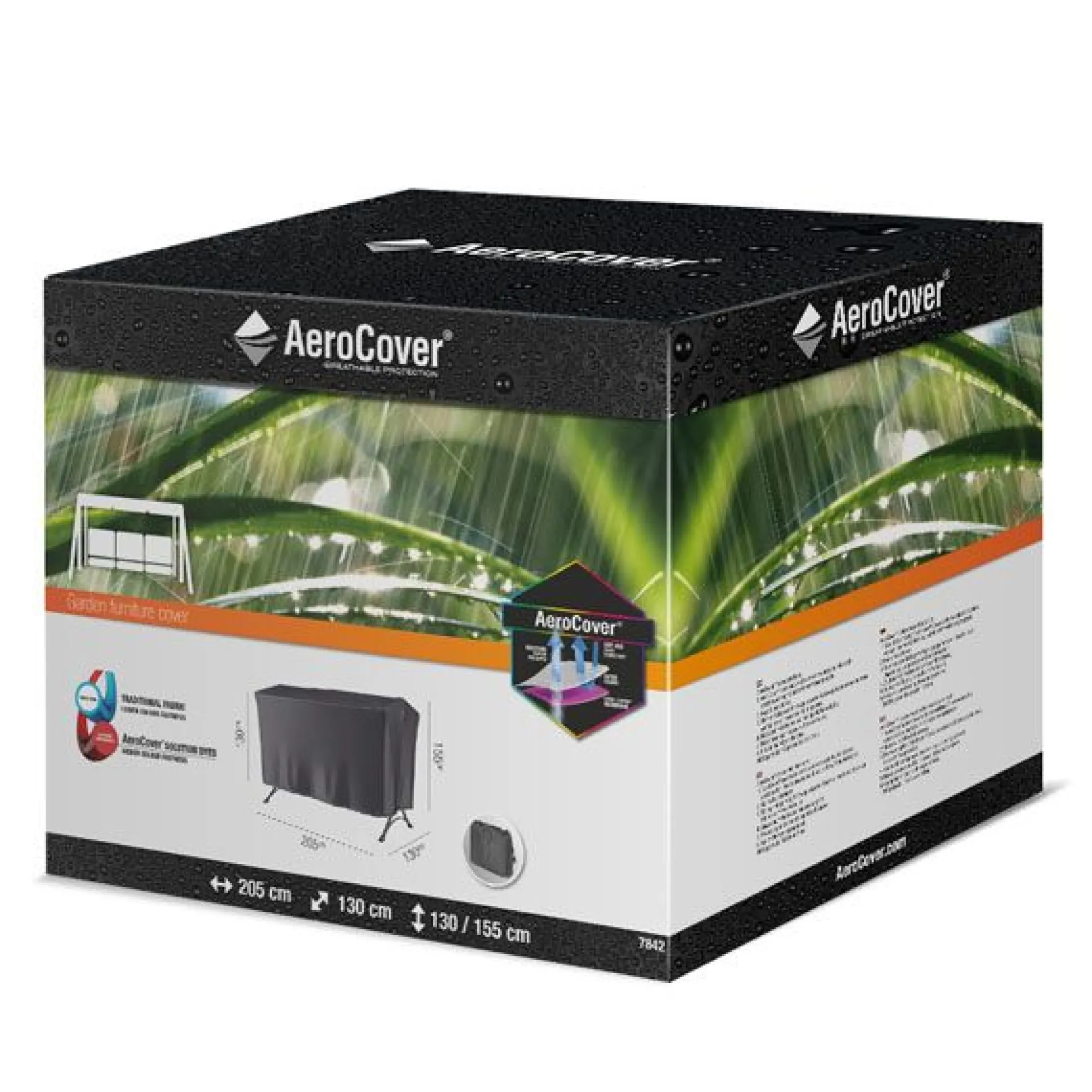 Schommelbankhoes voor schommelbanken van AeroCover. Ademende hoes voor schommelbanken met afmeting 205x130xh130/155cm.