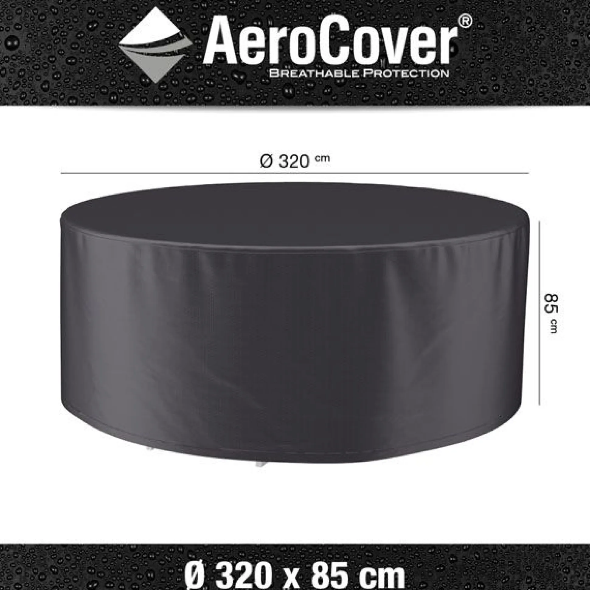 Tuinmeubelhoes voor tuinset van AeroCover. Ademende tuinsethoes voor ronde tafels tot 320cm inclusief stoelen.