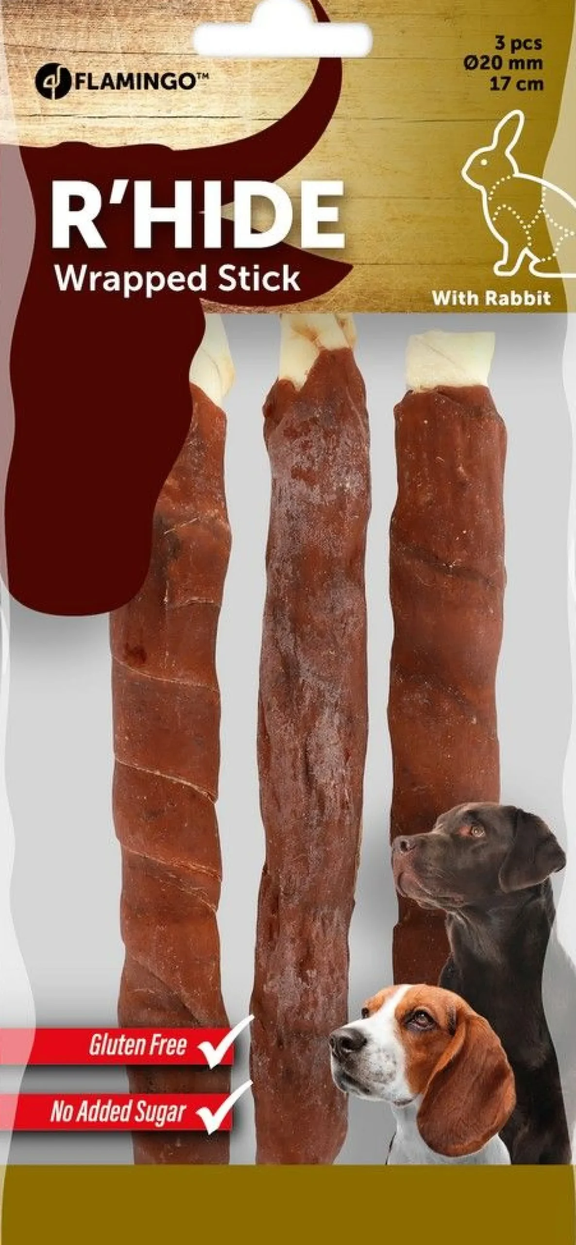 Konijn 48%, runderhuid 47%, zetmeel 1,5%, sorbitol 1,5%, glycerine 1,5%, zout 0,5%