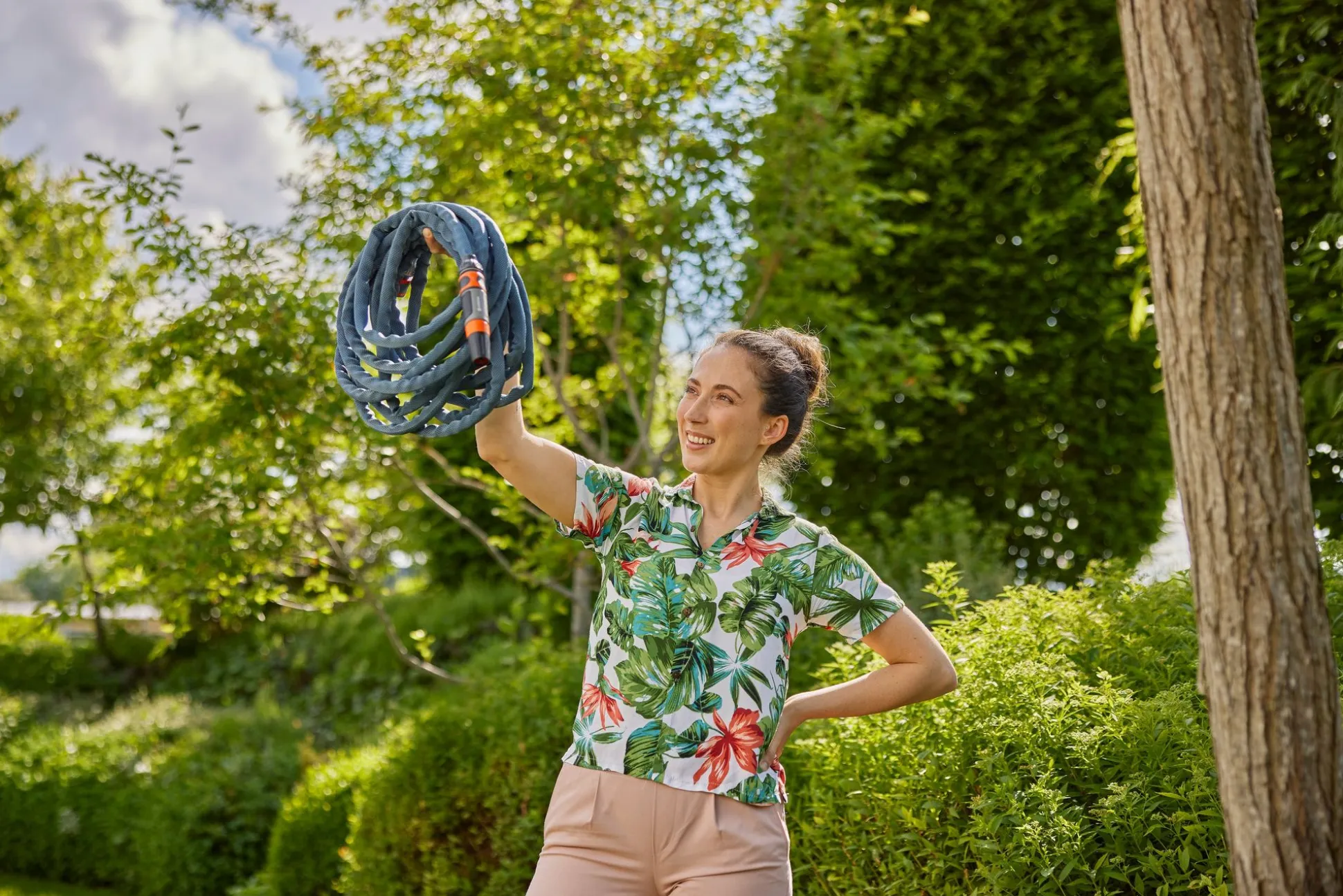 Gebruik de Textielslang Liano™ Xtreme 20 m Set van GARDENA voor langdurige en uitdagende bewatering. Met een totale lengte van 20 m is de textielslang met een diameter van 13 mm (1/2″) ideaal voor middelgrote tuinen. De Original GARDENA System-accessoires Liano™ Slangstuk en Liano™ Waterstop zijn al voorgemonteerd op de Liano™ Xtreme. Daarnaast bevat de set twee Kraanstukken en een Reinigingspistool. Doordat een van de twee kraanstukken een reduceerstuk bevat, kan je de textielslang aansluiten op drie verschillende kraanformaten. De Liano™ Xtreme dankt zijn uitstekende prestaties, flexibiliteit en hoge bestendigheid tegen externe invloeden aan de zeer flexibele PVC-binnenslang en de innovatieve buitenslang, gemaakt van extreem bestendig textiel. Dit maakt hem duurzaam en klaar voor de veeleisende uitdagingen in je tuin. Hij overwint ruig terrein, keien, rozendoorns of slepen langs ruwe muren zonder te knikken of te blijven haken. Je kan de Liano™ Xtreme langdurig comfortabel gebruiken, dankzij de aangename, slipvaste textuur en het laag gewicht. De vuilafstotende textielslang is tot wel 50% lichter dan conventionele PVC-slangen. Na de bewatering kan je de Liano™ Xtreme ruimtebesparend opbergen, bijvoorbeeld op een plank of in een schuurtje, dankzij zijn goede flexibiliteit. Hij past zich aan aan de beschikbare opbergruimte. De slang is bestand tegen een maximale druk van 35 bar. Dankzij zijn uv- en vorstbestendigheid kan hij het hele jaar door in de tuin blijven. De textielslang is vrij van schadelijke stoffen zoals ftalaten (<0,1%), maar ook cadmium, lood en barium (<0,1%). Na registratie op gardena.com/registration binnen 3 maanden na aankoop geeft GARDENA je een lange fabrieksgarantie van 30 jaar op de hoogwaardige Textielslang Liano™ Xtreme, die is geproduceerd in Europa. Ontwikkeld voor het extreme. Ontworpen voor het alledaagse.